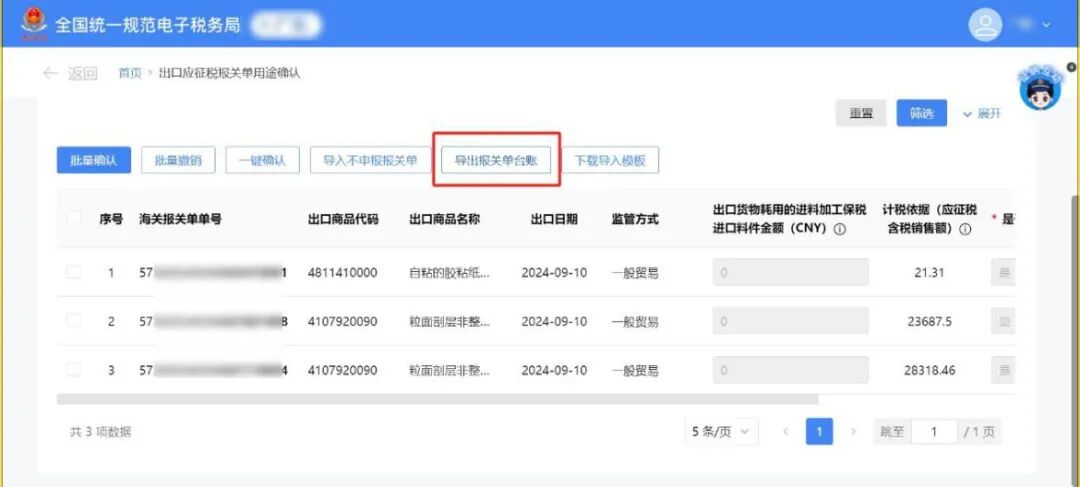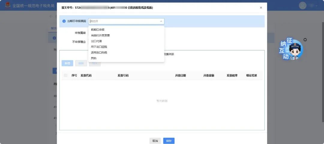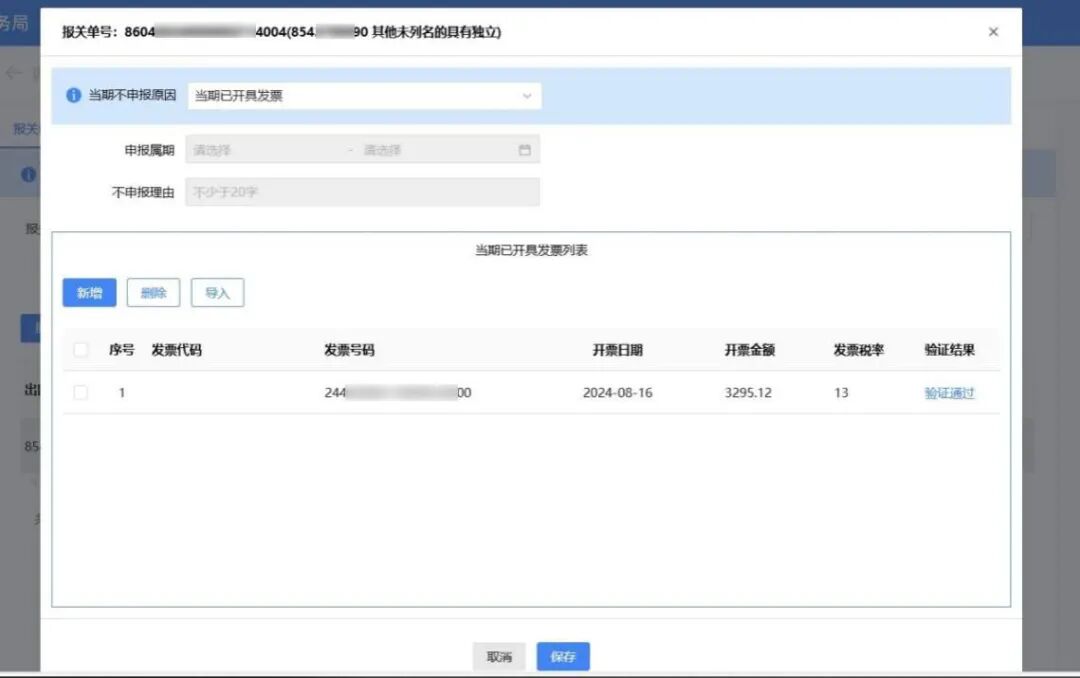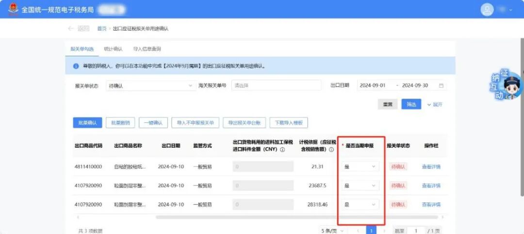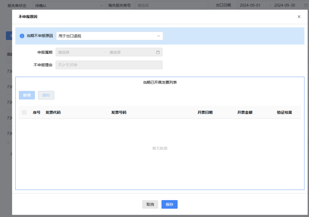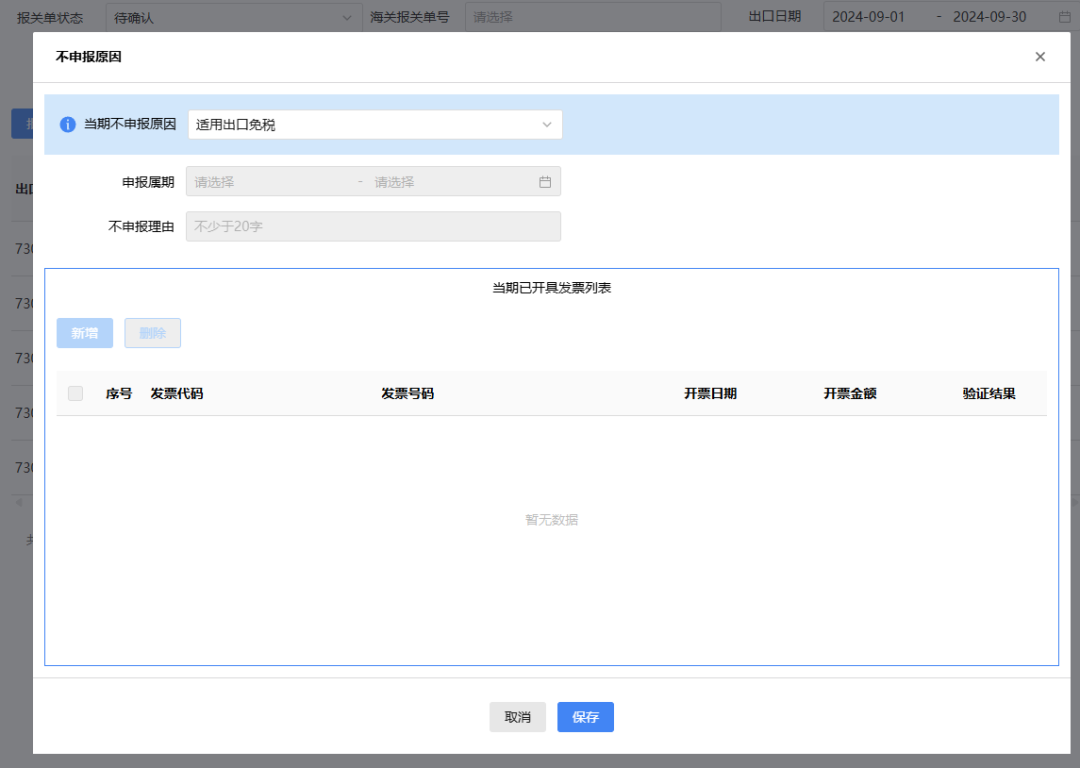 3月增值税申报前新增了《出口应征税台账新增报关单》确认功能。