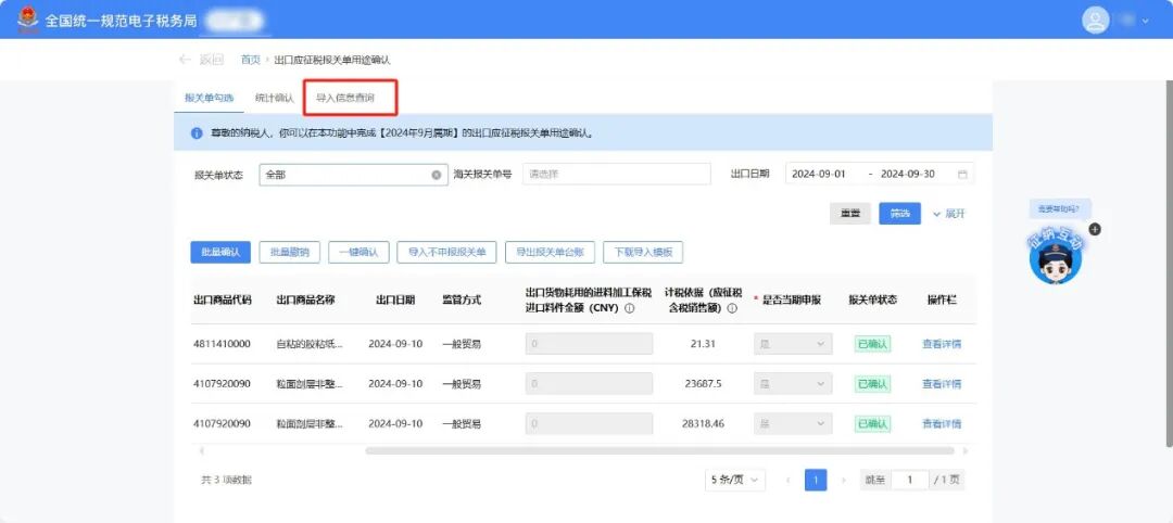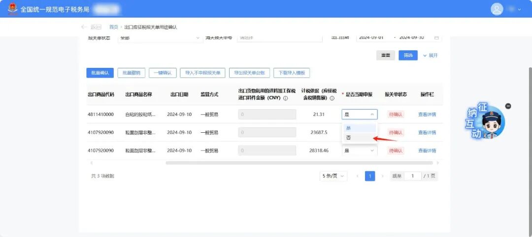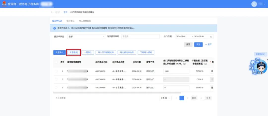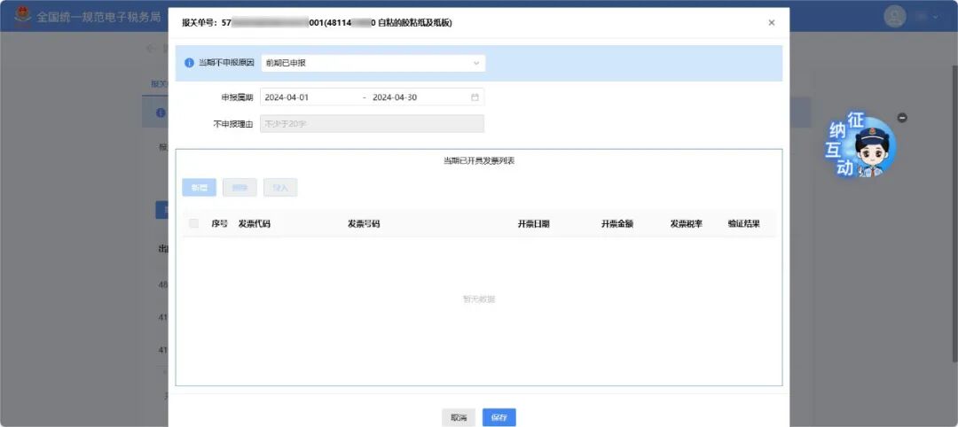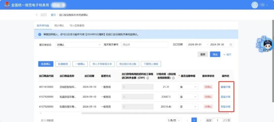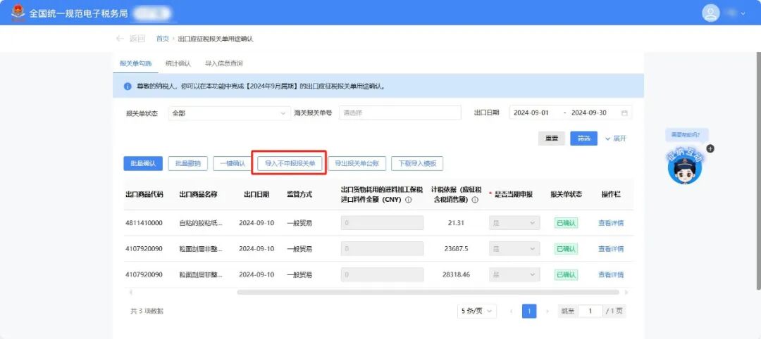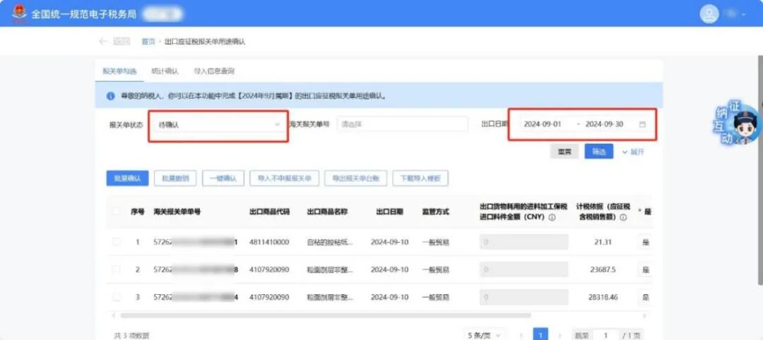 3月增值税申报前新增了《出口应征税台账新增报关单》确认功能。