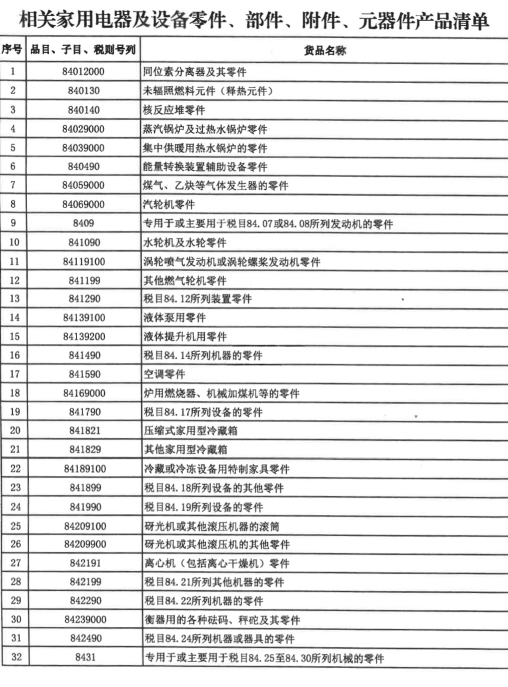 本次明确家用电器及设备零件、部件、附件、元器件产品清单共226个子目,意味着《中华人民共和国进出口税则》第八十四、八十五和九十章中除本次清单的226个子目之外,都可以享受自用生产设备“零关税”政策。