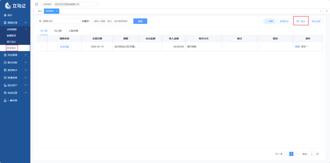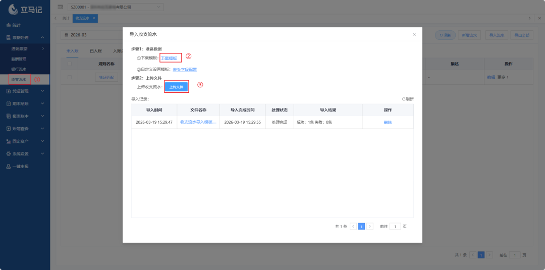 1. 【收支流水】模块:灵活录入+智能匹配,批量处理无压力
