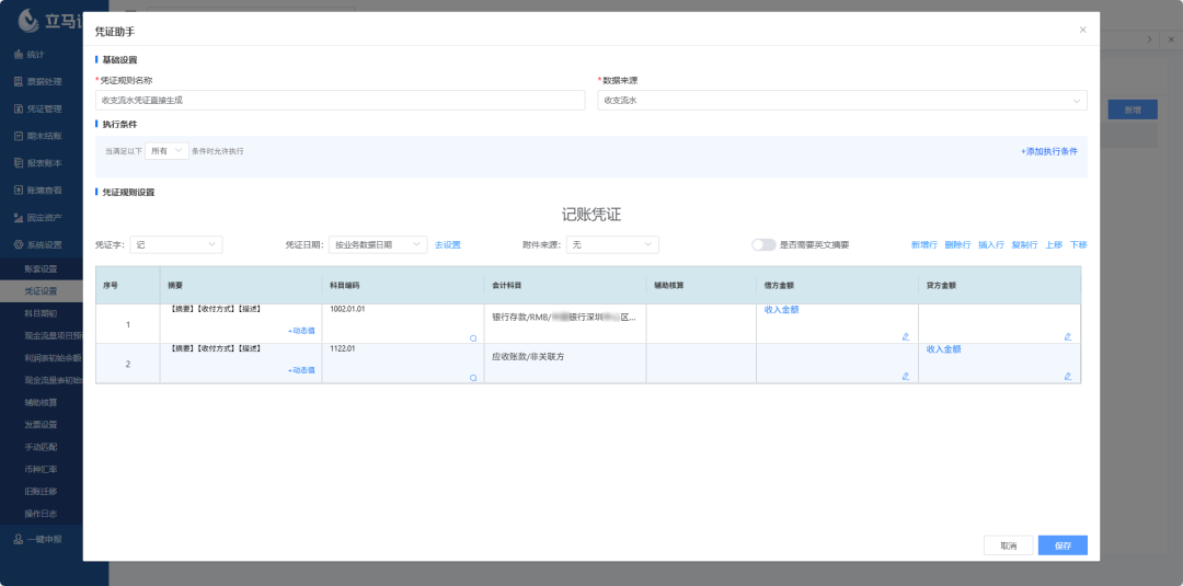3. 凭证规则升级:专属适配收支流水,记账规则更精准