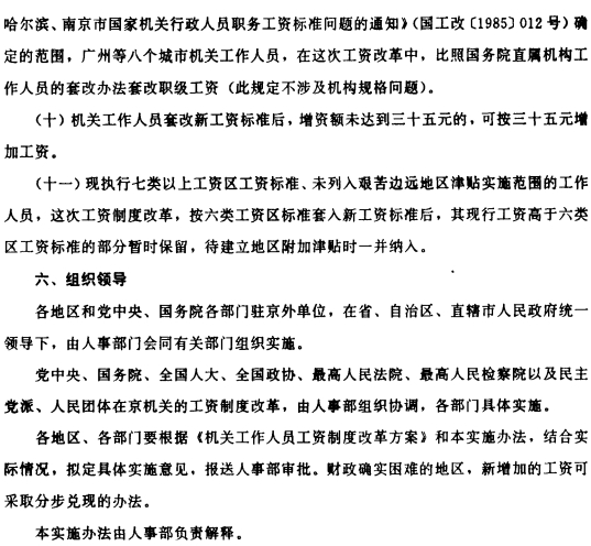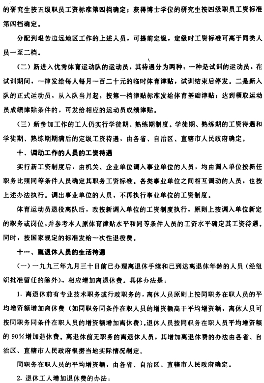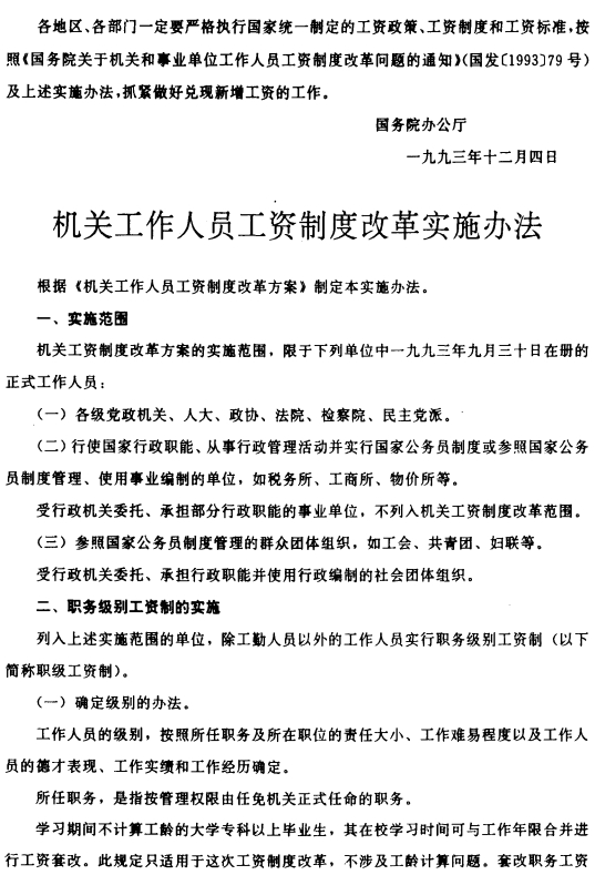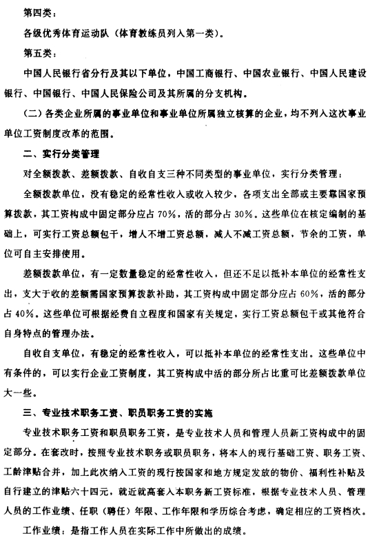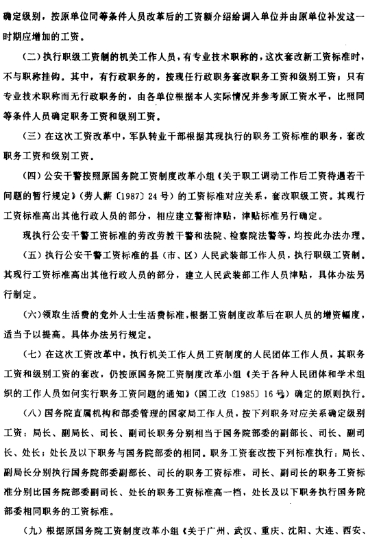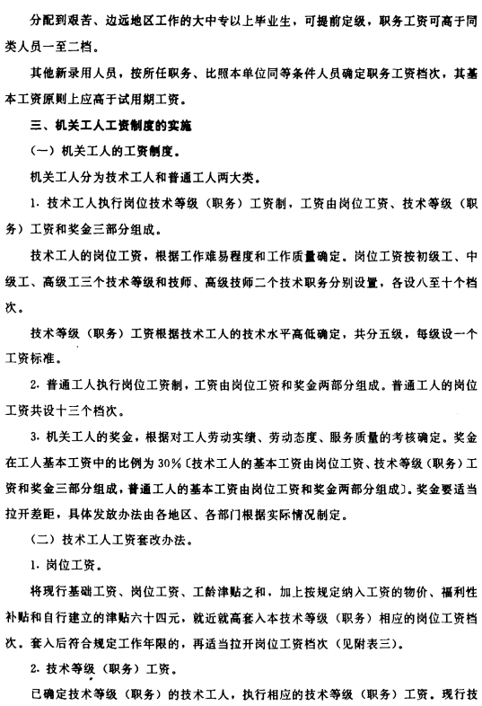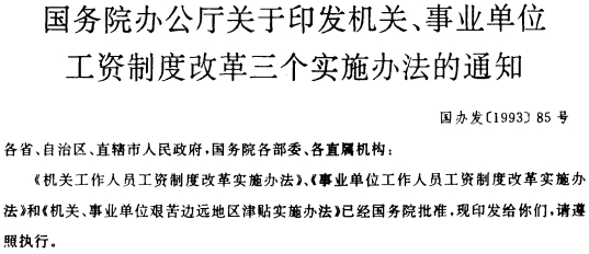 关于印发机关、事业单位工资制度改革三个实施办法的通知